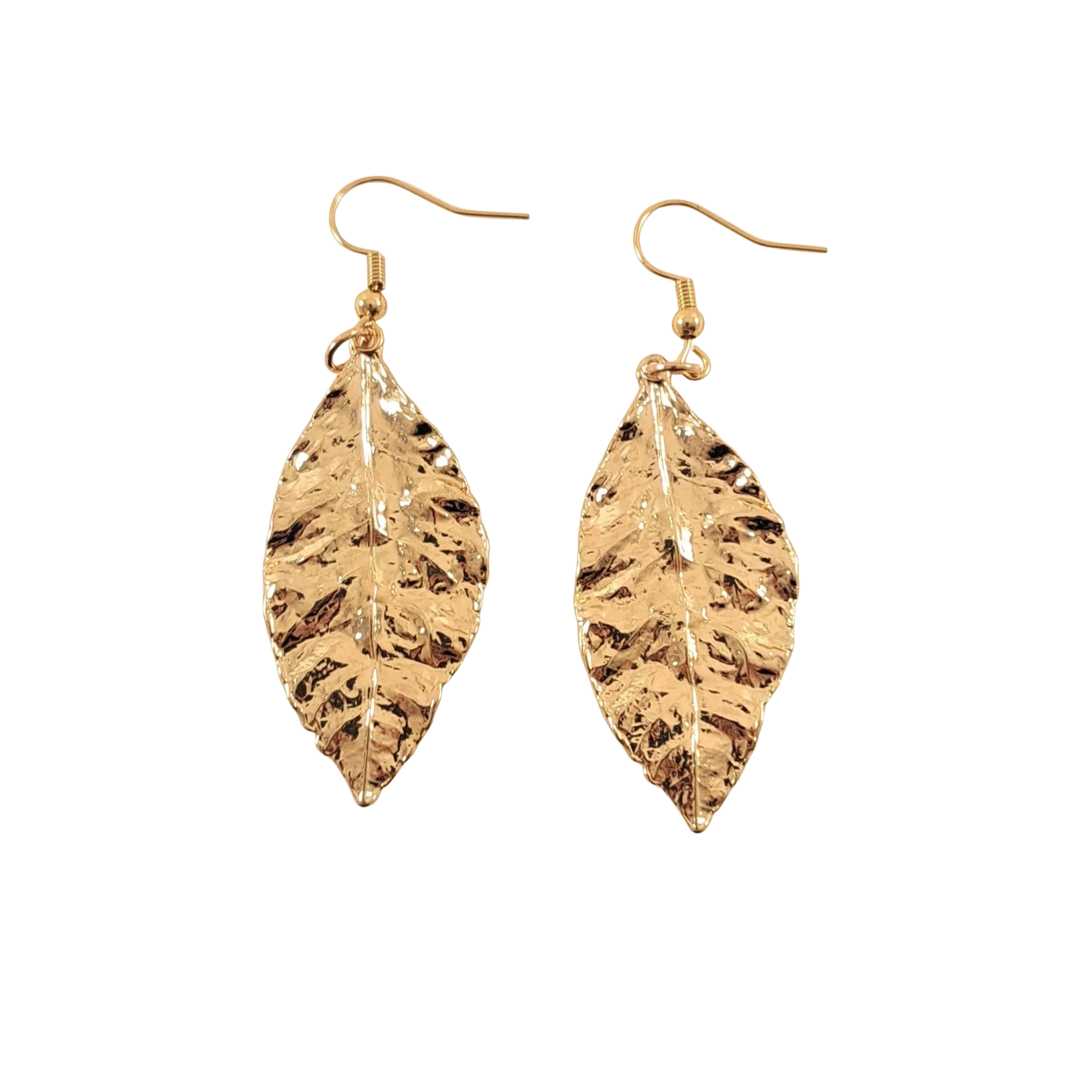 Add a touch of organic elegance to your look with these beautifully crafted Gold Leaf Earrings inspired by natural leaf forms. The textured surface and polished gold-tone finish catch the light just right, creating a radiant, eye-catching accessory.