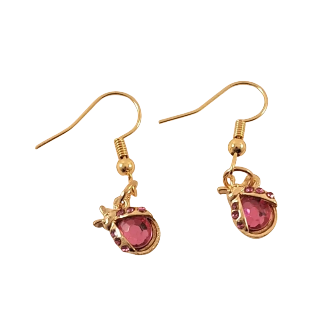 Infuse your jewelry collection with charm and personality through our Pink Ladybug Earrings. These whimsical dangles combine a nature-inspired design with eye-catching pink gemstones, offering a stylish accessory that feels both fun and sophisticated.