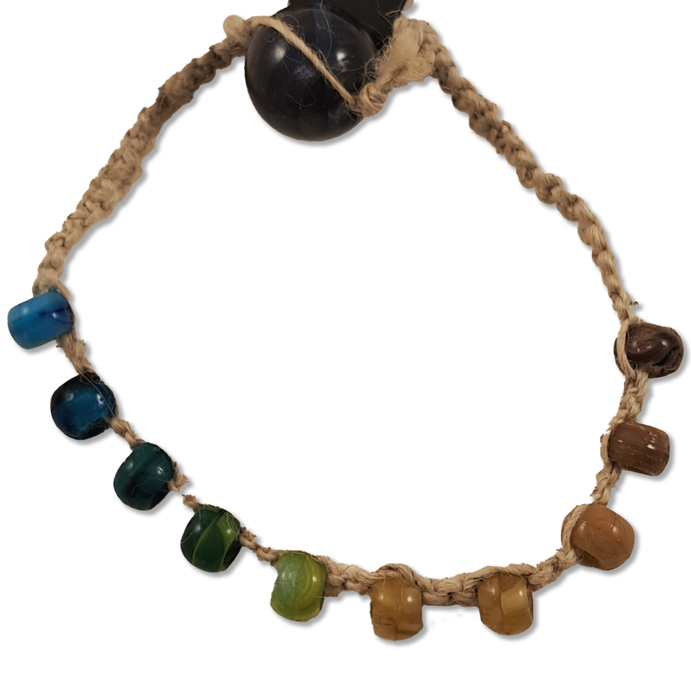 Rainbow Beaded Hemp Anklet with Handmade Design