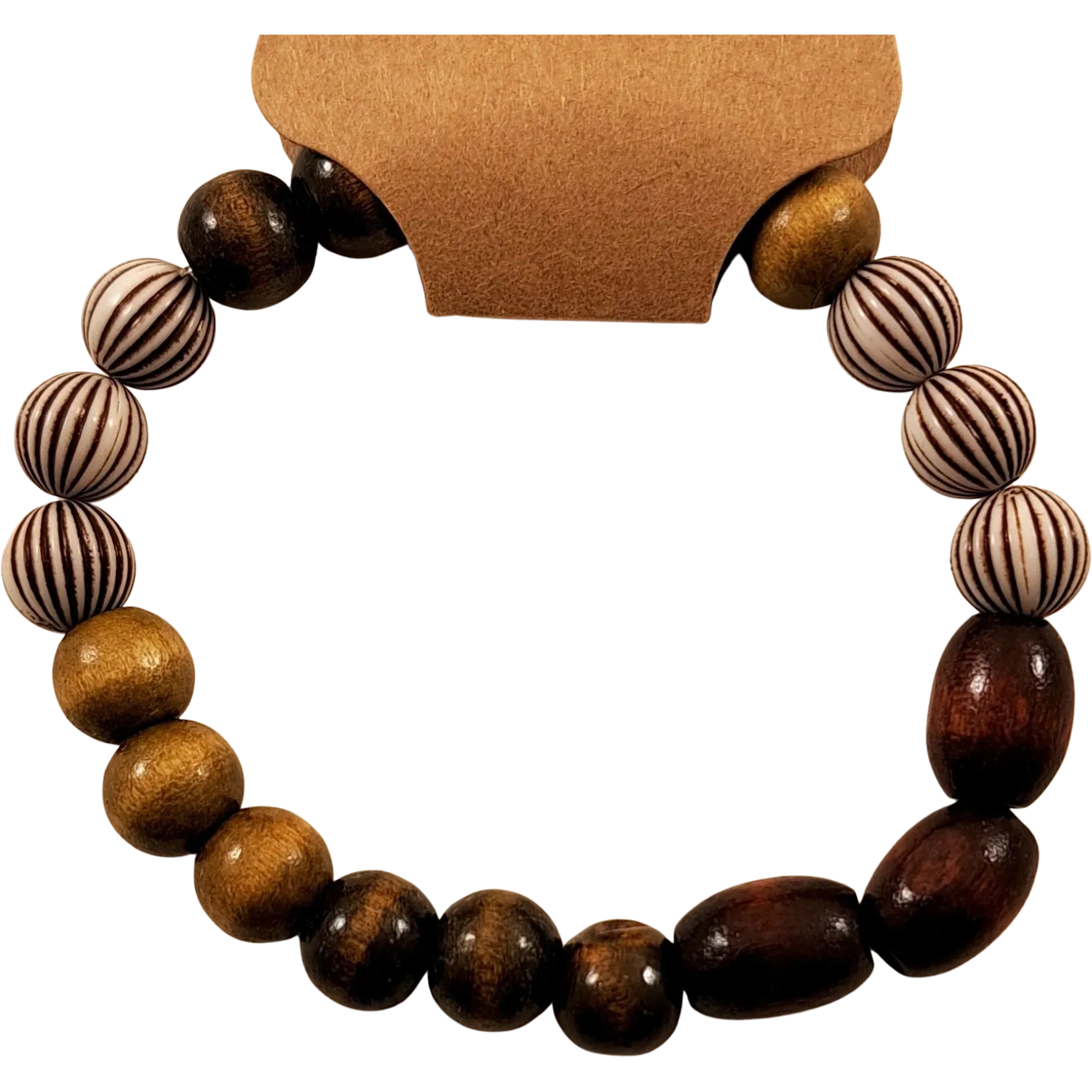 Channel effortless bohemian energy with this handmade wooden bracelet from Capstone Hemp. Designed with an artistic eye, it features a blend of deep-toned wooden beads and intricately carved striped accent beads that offer a playful contrast. The natural grain and texture of the wood bring warmth and character to every piece.
